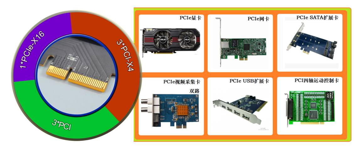可擴展顯卡、網卡、USB卡,視頻采集卡、運動控制卡等。